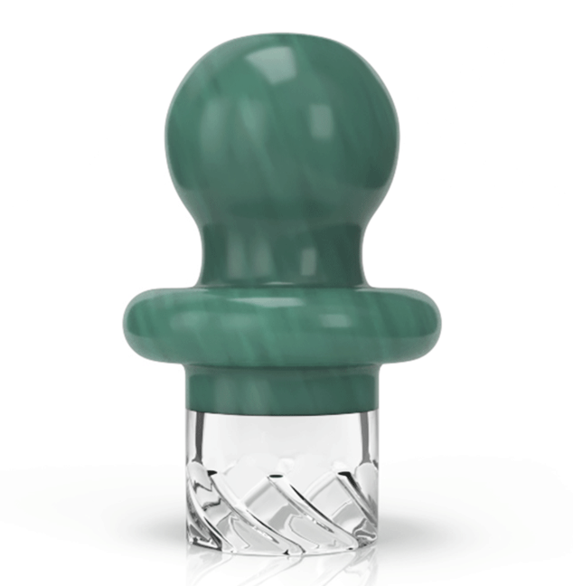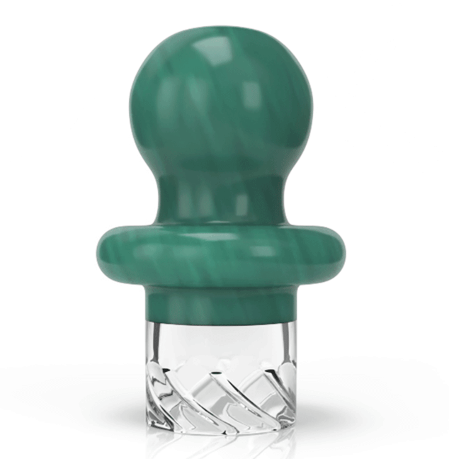 The Button Top Vortex Spinner Carb Cap design allows ample movement with terp perls. The multi-use design allows the cap to be used with or without terp pearls.