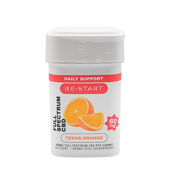 | Flavor: Texas Orange | Strength: 60mg CBD per gummy | Servings per Container: 4, 15 or 30 |
