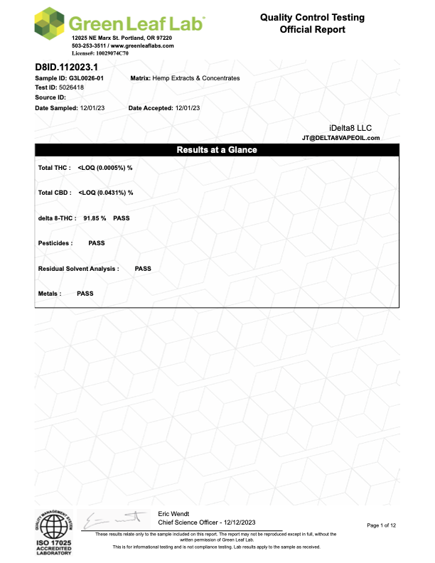 INGREDIENTS: Supercritical CO2 Extracted D8 distillate derived naturally from US grown hemp, natural and fruit terpene flavoring.