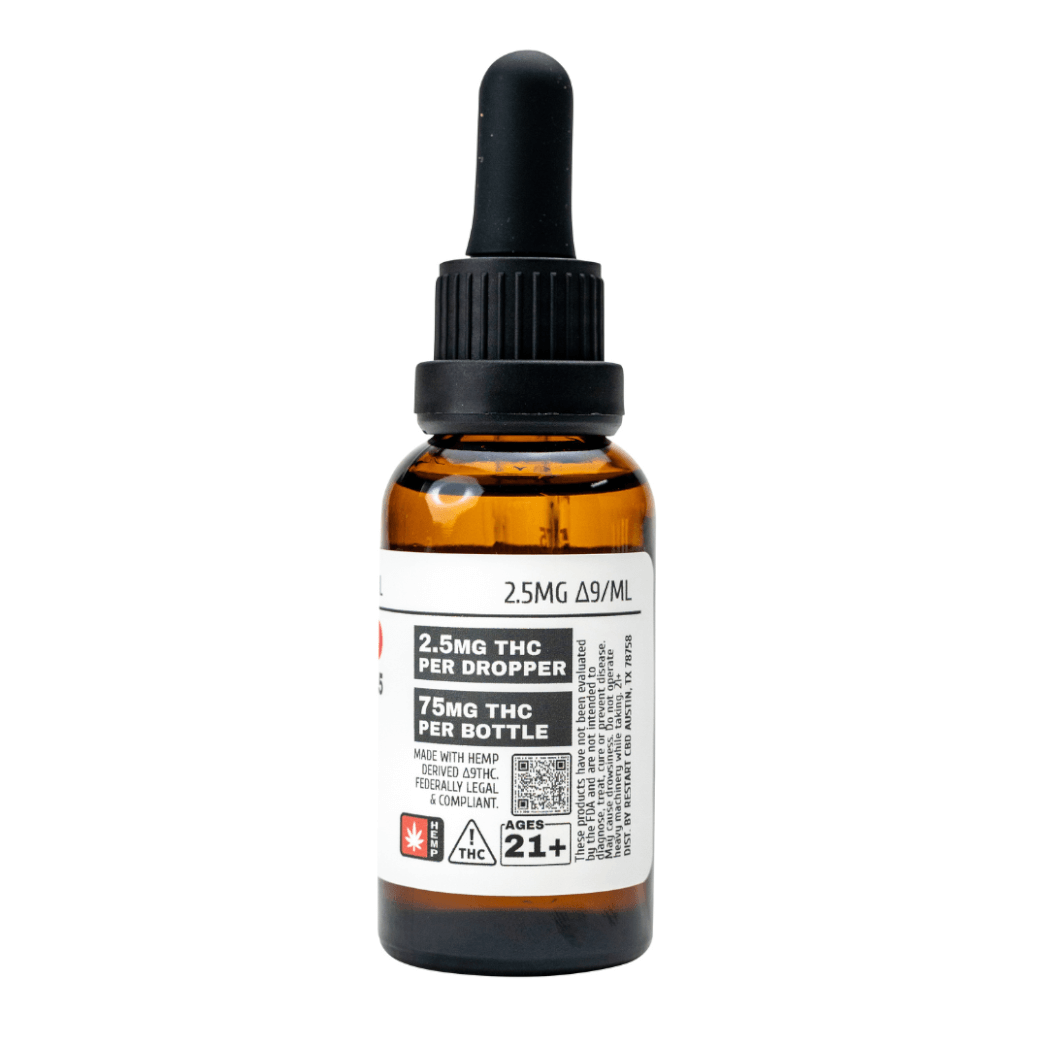 RESTART Delta 9 THC Oil is the highest potency oil available based on legal restrictions by weight. When added to your favorite homeade snacks, each bottle will make fifteen 5mg edibles. It is derived from award-winning hemp that’s artisan extracted to provide you with robust wellness support for mood, sleep, and discomfort relief. With 2.5mg per 1ml dropper serving, considered a microdose, you will gain fast-acting results that last throughout the day and night.
