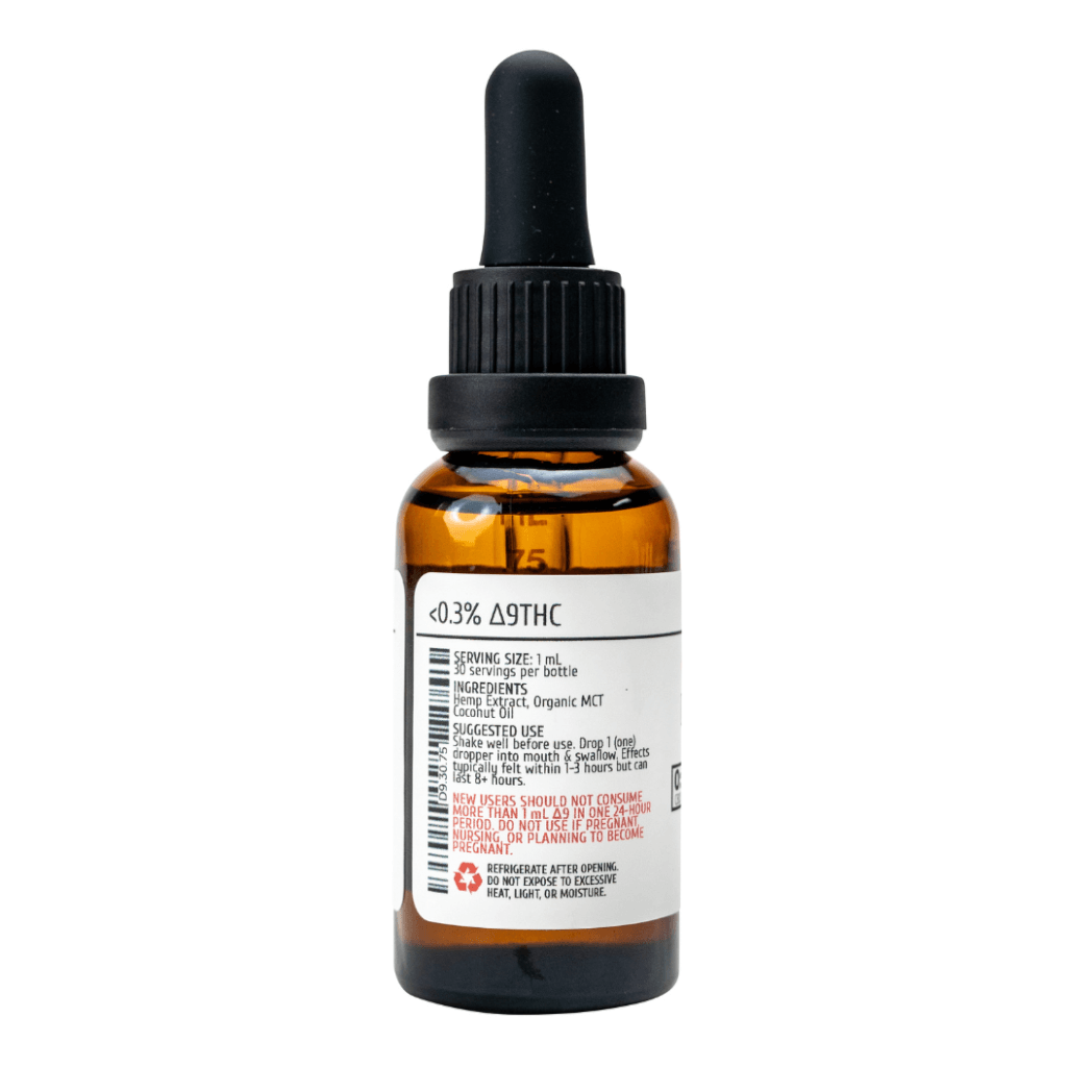 Our Delta 9 THC oil contains two ingredients: full spectrum hemp extract, and organic MCT oil from coconut as a carrier oil. Delta 9 hemp oil is intended for sublingual use, just place it under the tongue and hold it in your mouth for up to a minute and a half before swallowing. If you don’t like the sound of that, you can add a drop to your food or a glass of water.