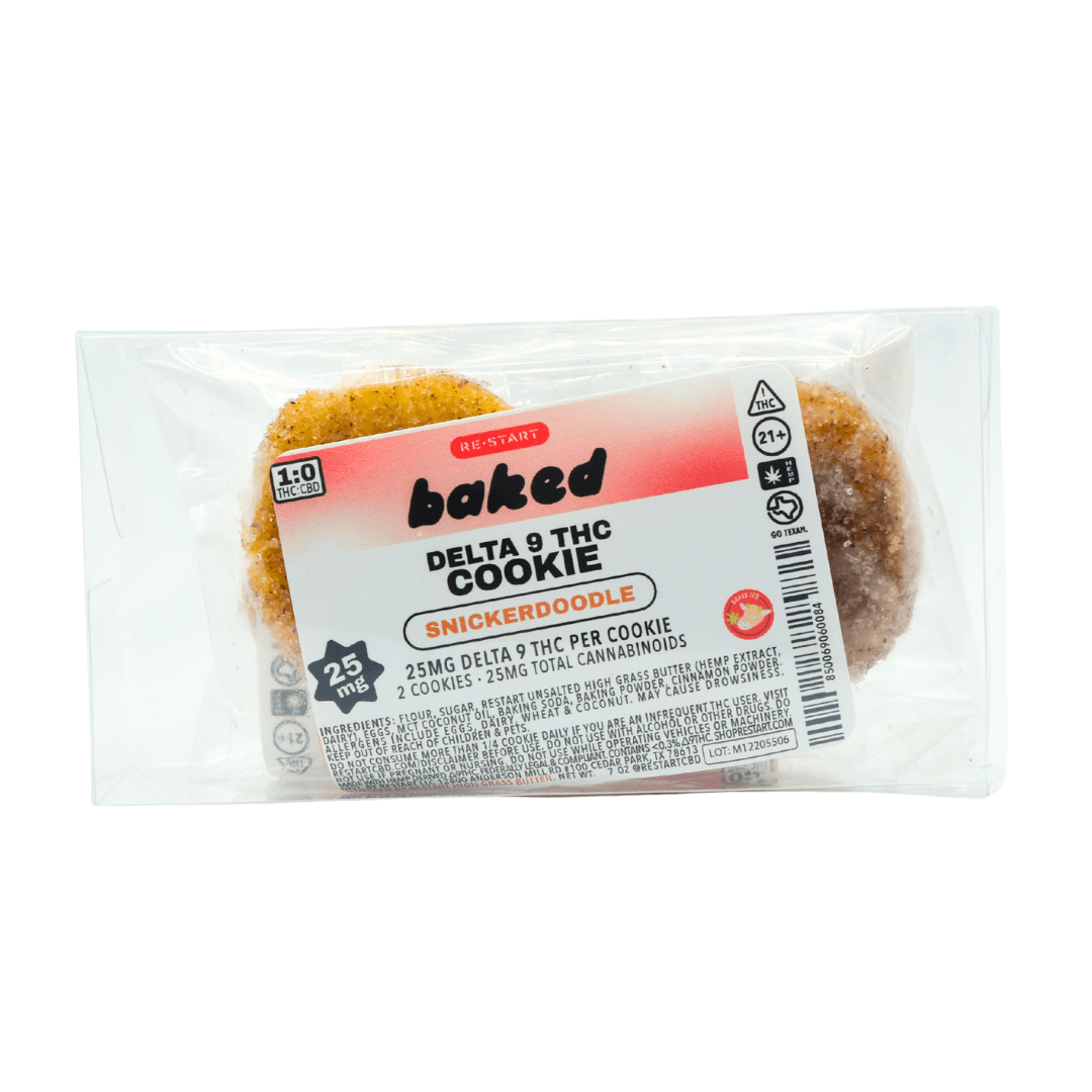 Introducing RESTART THC Snickerdoodle Sugar Cookies. They are homemade with High Grass THC Butter in Austin Texas. Super potent 25mg of Delta 9 and full of cinnamon. They always get rave reviews and contain 2 per pack.