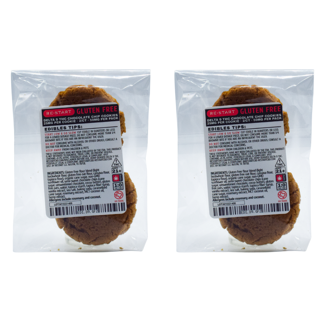 Keep Austin Chill with RESTART Delta 9 THC Gluten-free Chocolate Chip Cookies.