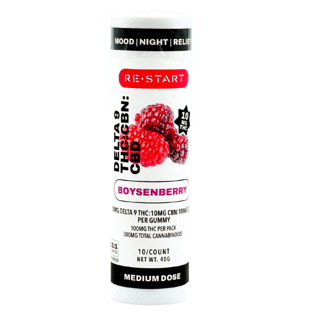 RESTART THC CBN CBD 4=30mg gummies are crafted to enhance your bedtime routine. They provide the entourage effect along with a slight sense of euphoria, putting you at ease while you get ready to turn in for the night. Designed to give you a pleasurable cannabis experience, while still adhering to legal THC limits.