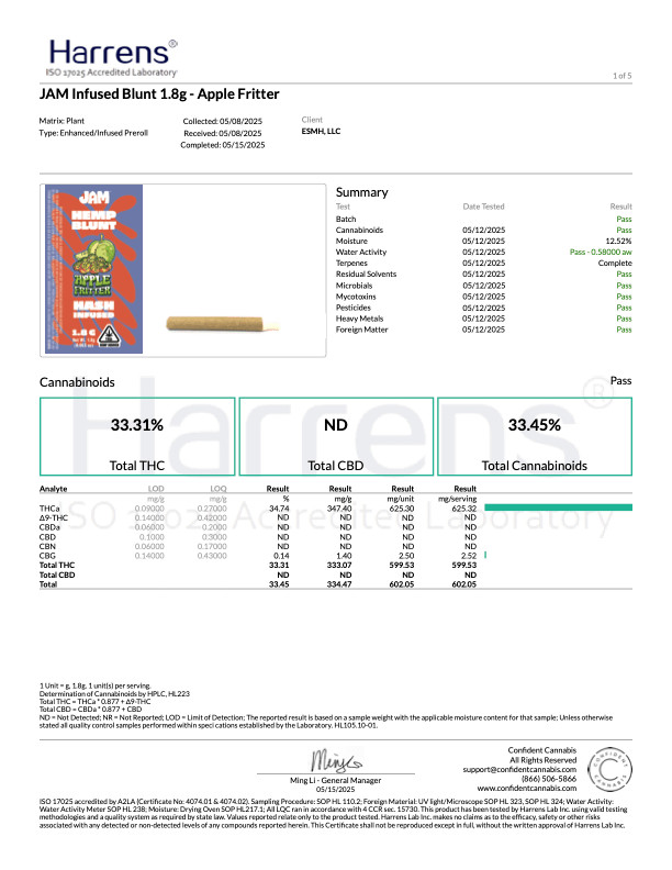 JAM: Hash Infused THCA Blunt (H) Apple Fritter 1.8G