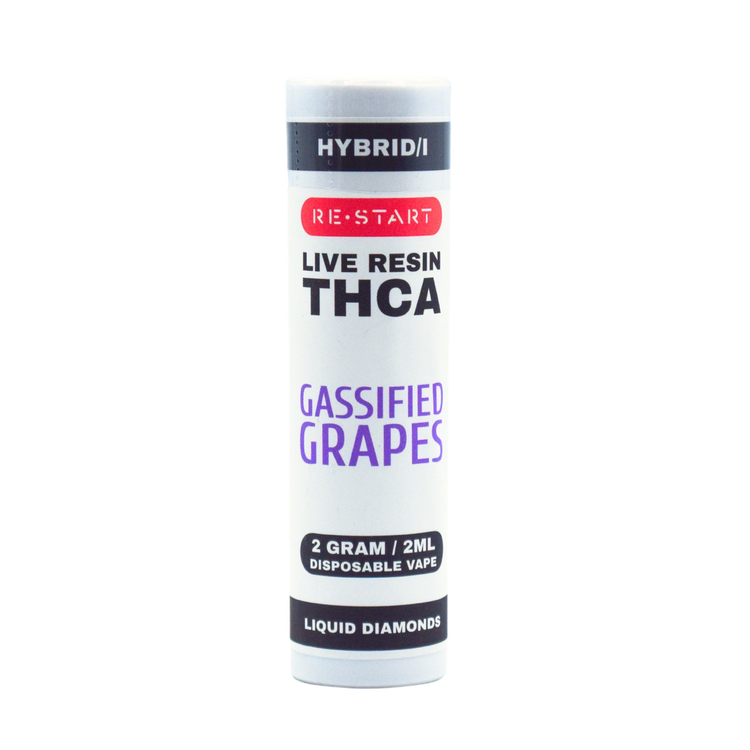 Are you looking for a strong, flavorful, and naturally produced disposable without all of the unnecessary additives and cutting agents? Look no further! RESTART THCA Gasified Grapes disposables are made with THCA liquid diamond live resin and cannabis derived terpenes, making them the cleanest disposable on the market. No fillers, just cannabis derived components.