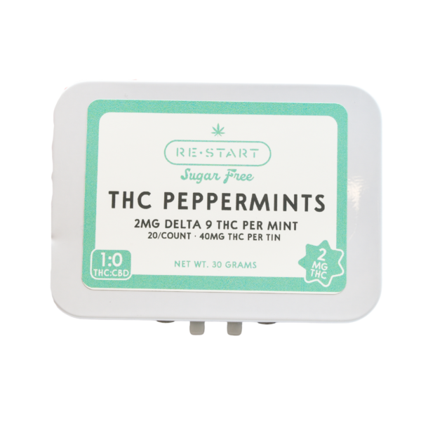 RESTART Sugar free THC Peppermints Delta 9 THC 2mg Mints are Small in size, but not effect.