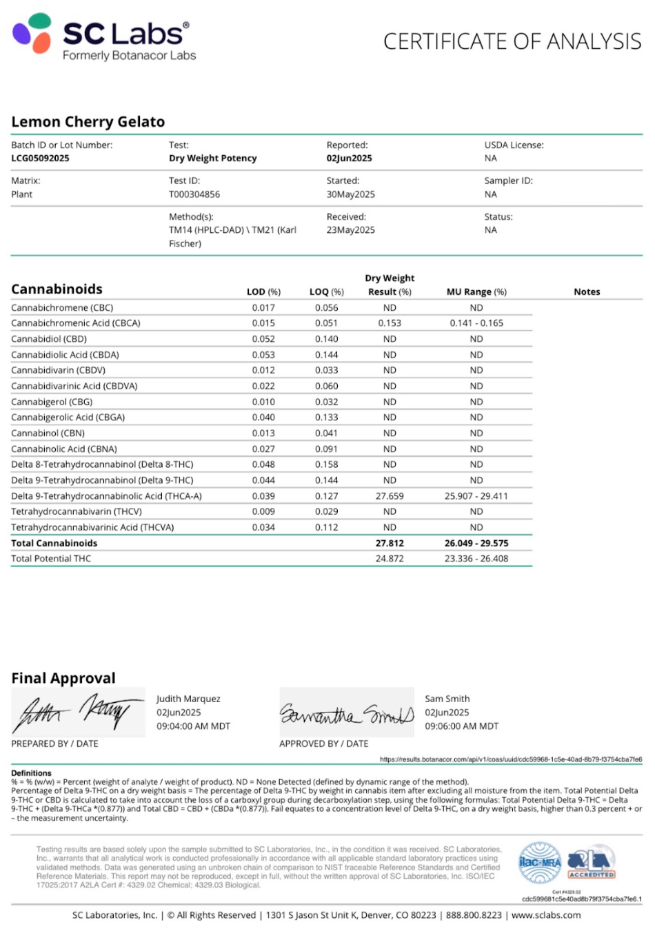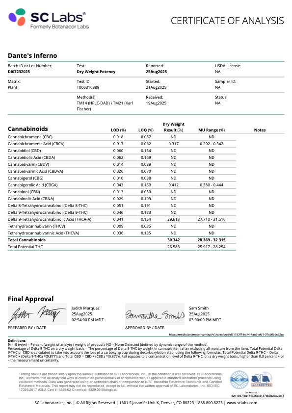 100% high-THCa hemp flower containing < 0.3 % Delta-9-THC