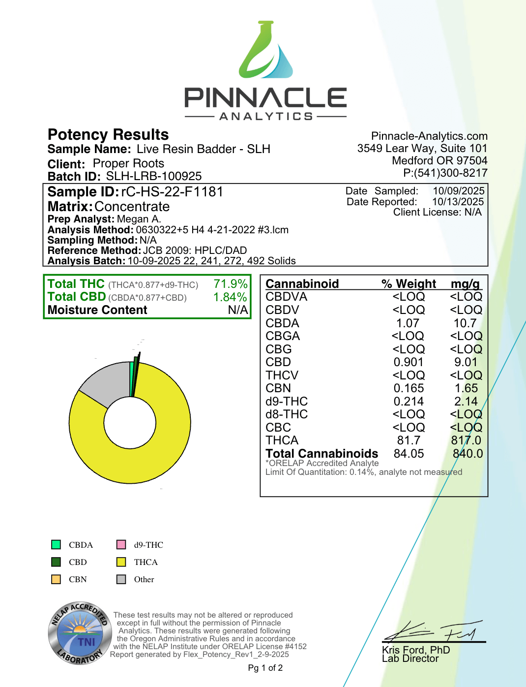 Unique to the cannabis industry and market, this product is derived from fresh frozen high quality flower, no synthetics whatsoever, and kept in a temperature controlled environment to preserve the natural cannabis derived terpenes within the product. What does this mean in layman’s terms? Pure, unadulterated flavor, pure unadulterated purity, and pure unadulterated potency. If you’re a dabbing connoisseur this is the product you’ve been waiting for. And if you’re new to dabbing, there is no better way to explore and experience a one-of-a-kind dabbing experience with Proper Roots THCA Live Resin Badder 1G – Citrus.