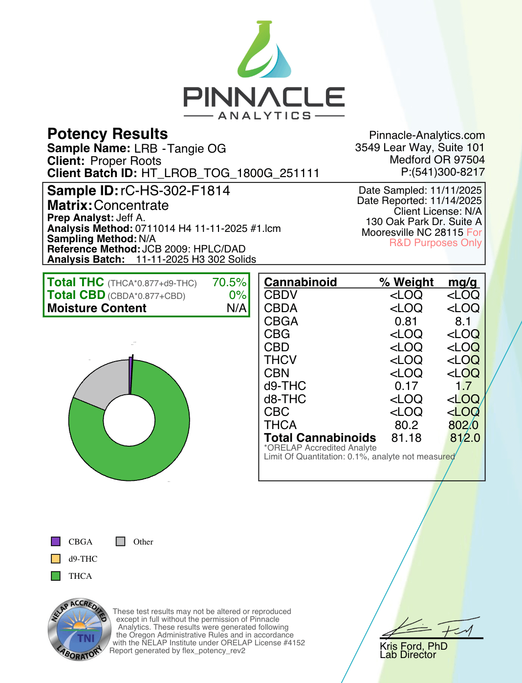 | Aroma: Citrus (Sativa) Tangie OG | Effects: Happy. Creativity. Energy. Focus. | Size: 1 Gram 80.2% THCA (802mg/g) |