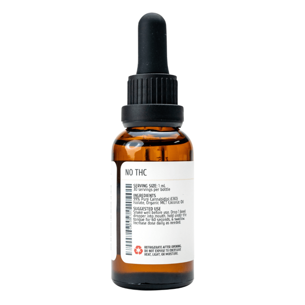 Ingredients: Organic Medium-Chain Triglyceride (MCT) Oil (coconut derived), 99%+ Pure Hemp Cannabidiol (CBD) Isolate.