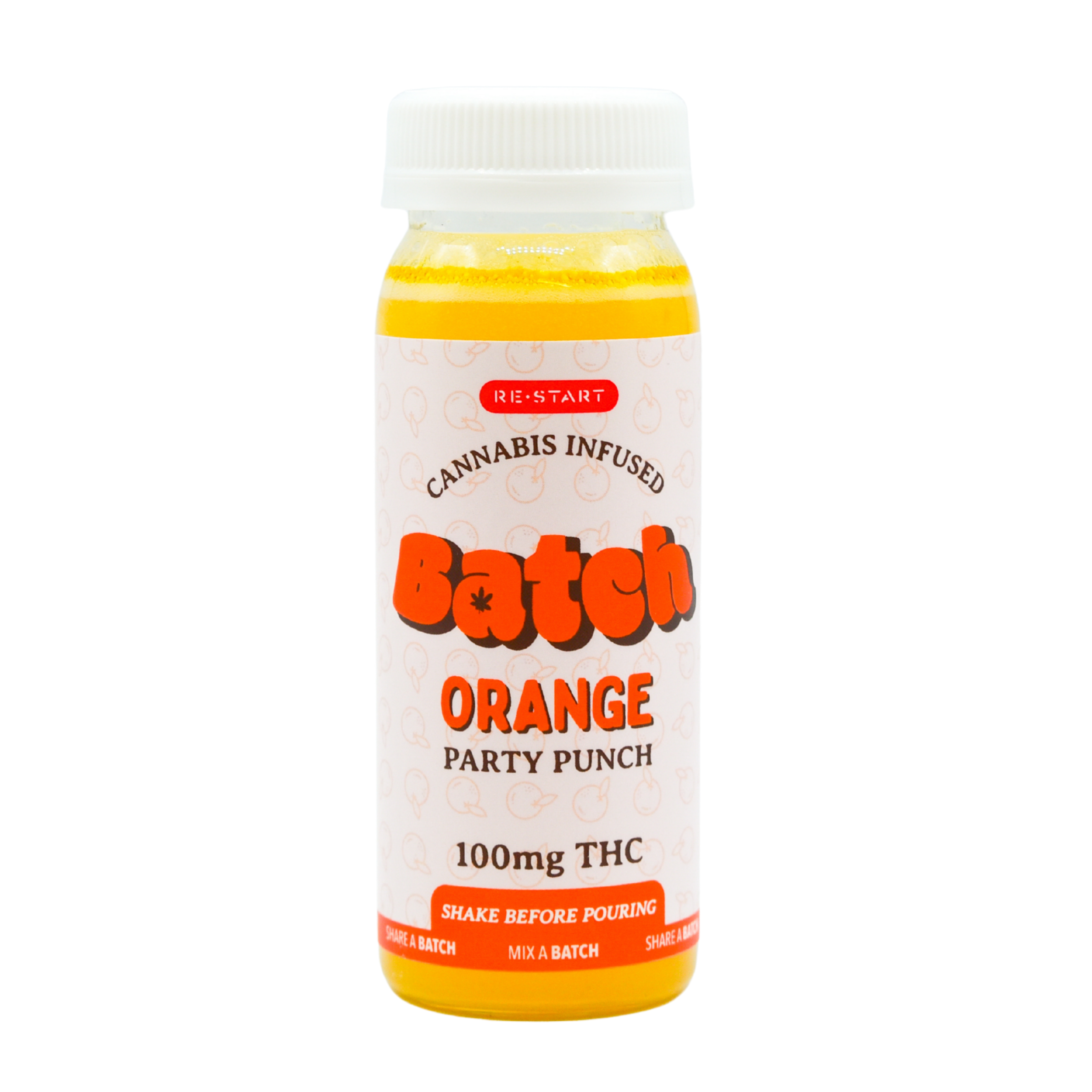 | THC Drink: Batch | Strength: 100mg ∆9 per 4oz (for first time use, do not consume more than 10mg Δ9THC per 24 hours) | Flavor: Orange |