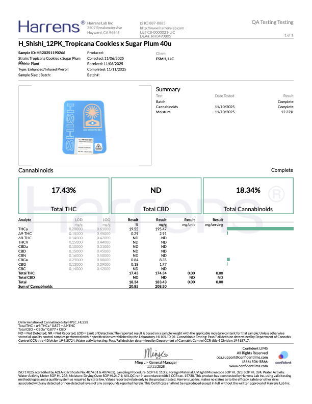- Brand: Shish – solventless craft by Emerald Sun (Northern California)