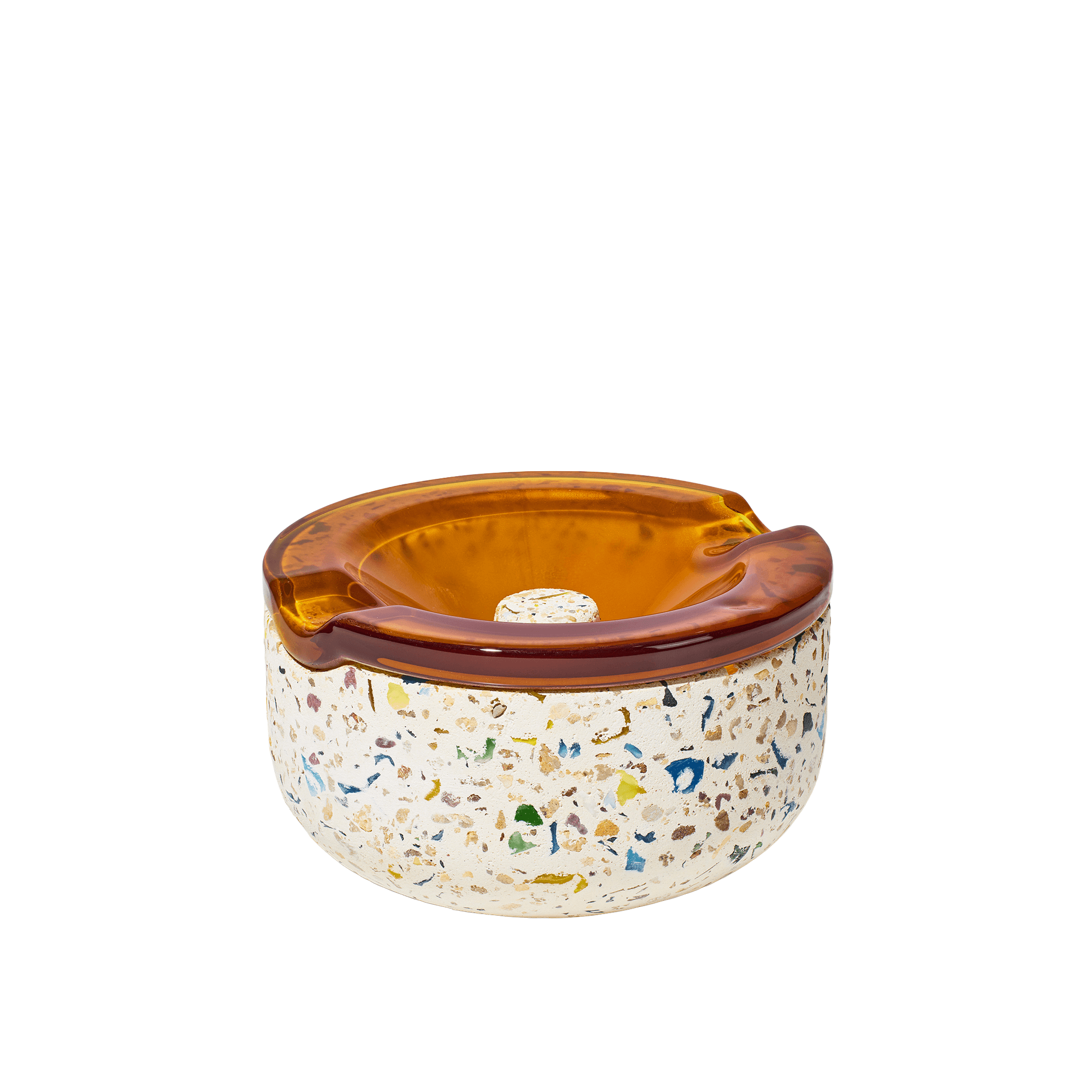The NWTN Home Symi Ashtray blends vintage-inspired design with modern materials. Featuring a terrazzo base made from recycled glass, a removable borosilicate glass top, and thoughtfully placed grooves to keep essentials in place, added silicone footing for shock-absorption—bringing refined function to a timeless form.