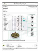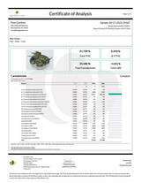 | Total Cannabinoids: 32.5% (325mg/g) | Potency: 30.94% THCa | .20% Δ9THC | | 1.13% CBGa | .21% CBC | Total THC: 27.34% (274mg/g) |