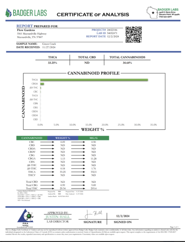 Green Crack THCa Flower is super potent and best when mixed with CBD flower.