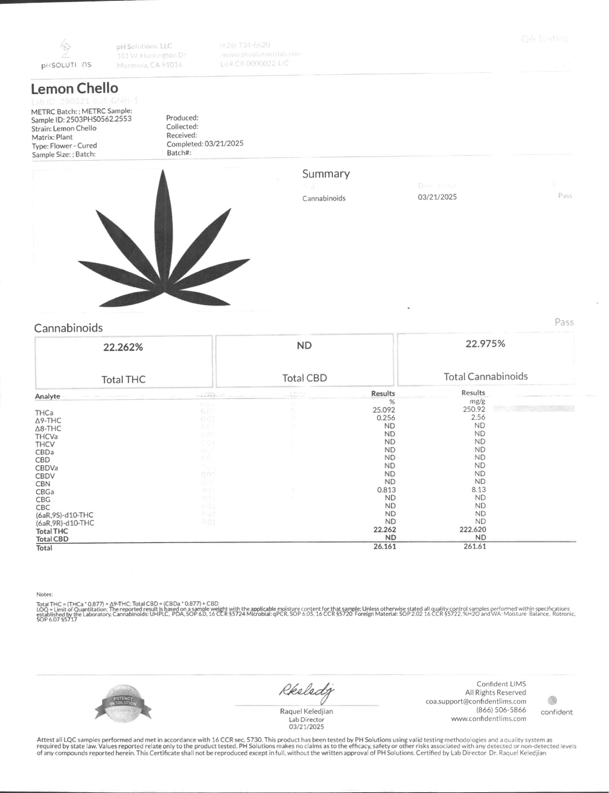 | Strain: Lemoncello (Hybrid) | Genetics: Lemonade x Cherry Pie | Aroma: Savory. Citrus. |