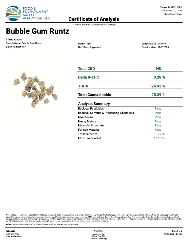 | Strain: Bubblegum Runtz (Hybrid) | Genetics: Bubblegum x Runtz | Aroma: Sweet. Fruity. Bubblegum. |