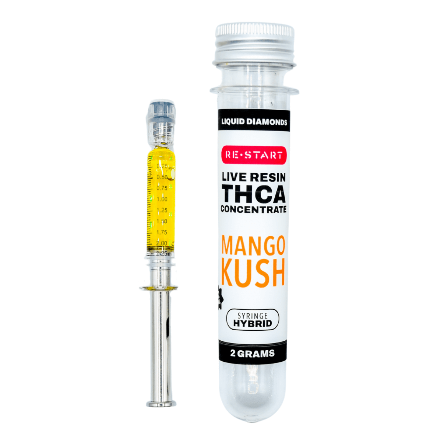 Are you looking for a strong, flavorful, and naturally produced concentrate without all of the unnecessary additives and cutting agents? Look no further! RESTART THCA Mango Kush Syringes are made with THCA liquid diamond live resin and cannabis derived terpenes, making them the cleanest product on the market. No fillers, just cannabis derived components.